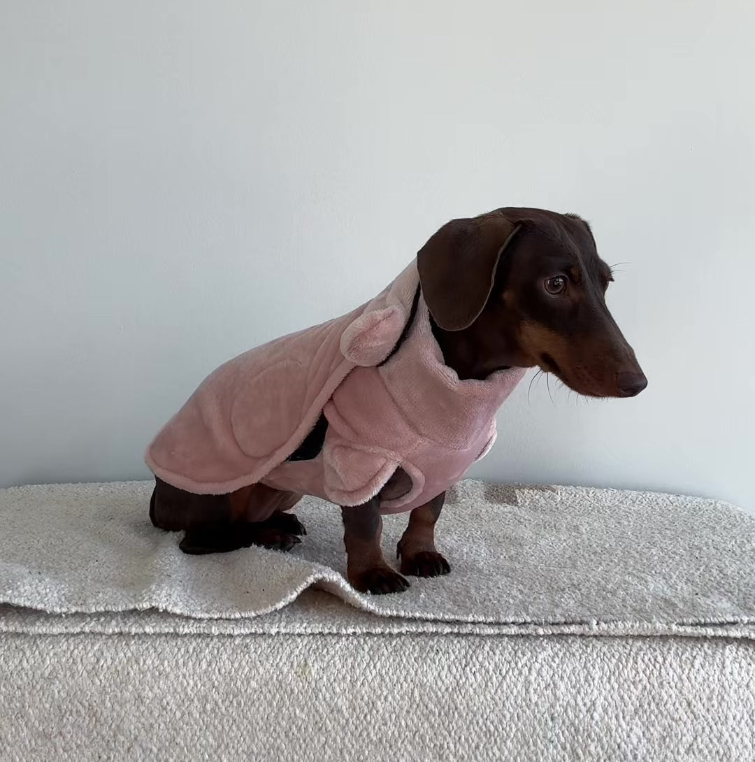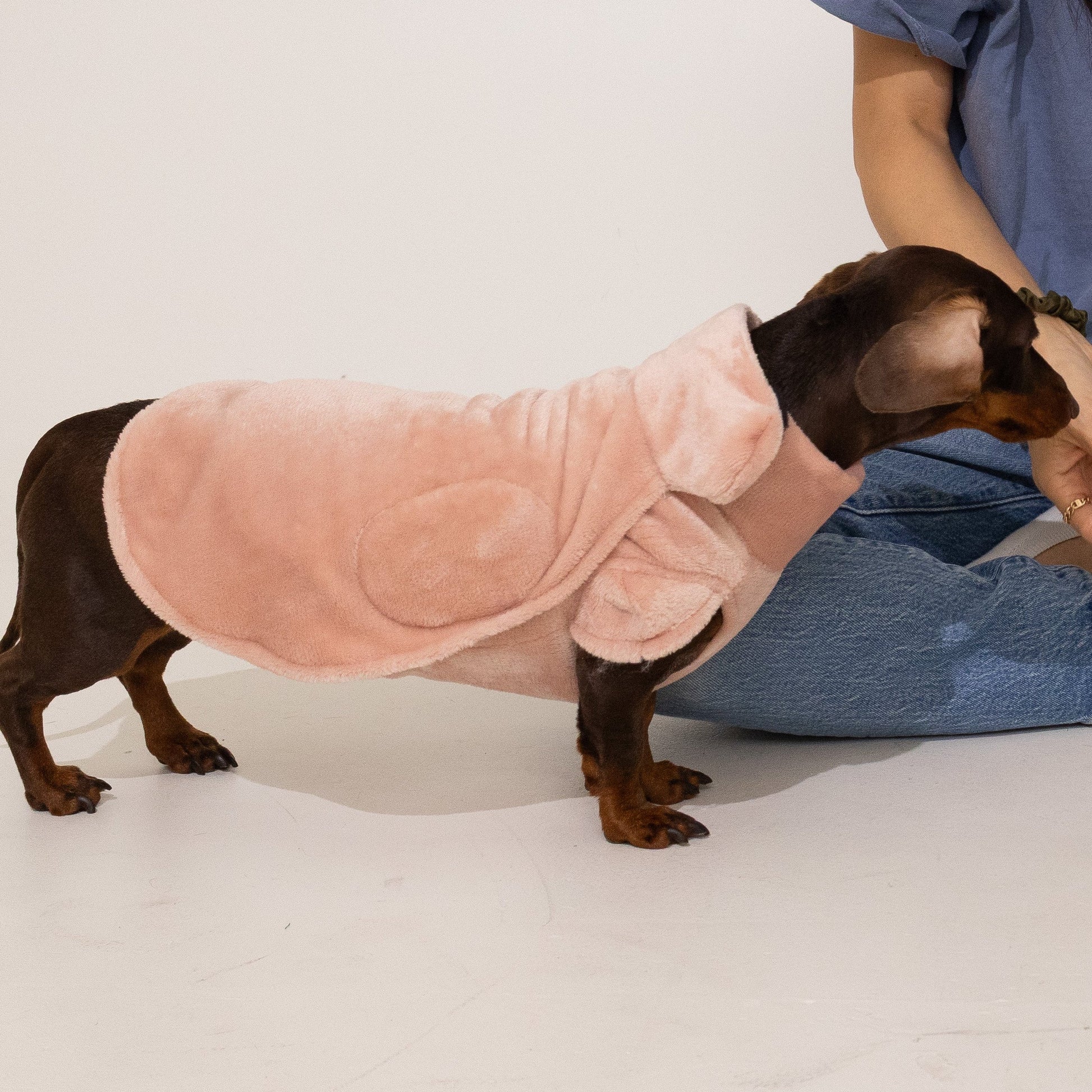 Our Pastel Pink Plush Sweater is sweet, soft, and made to fit mini dachshunds perfectly. With its cozy wrap-around design, it keeps every part of your doxie warm while the gentle pink adds a playful, stylish touch to your long dog’s look.